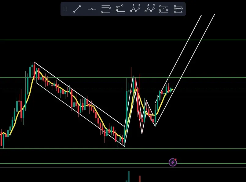 비트코인 현재 기준 저항 지지 추세선을 그어봤습니다.