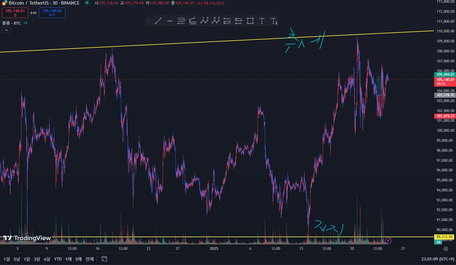 강의를 듣고나서 30분봉으로 작도를 해봤습니다!