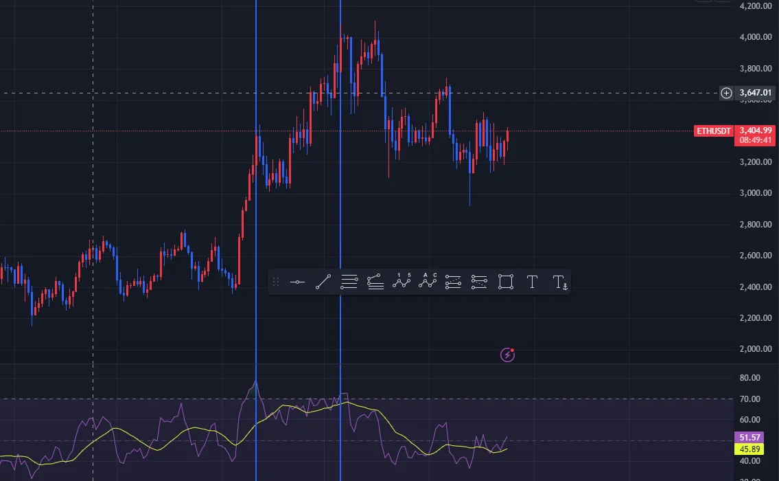 실제로 RSI가 70이 넘은 과매수 구간이 발생한 후에 가격이 하락하는 것을 볼 수 있었습니다!