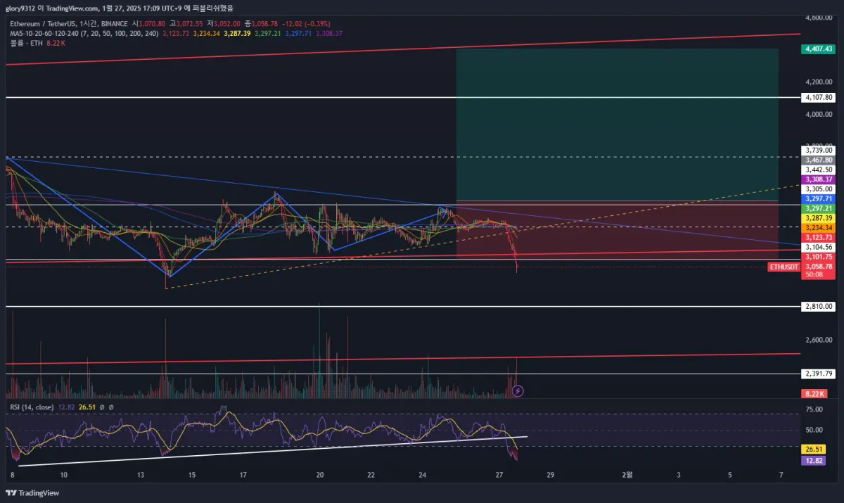 - 지지라인 하향돌파 => 저항라인이 되기 때문에 추가 상승 어렵다고 판단