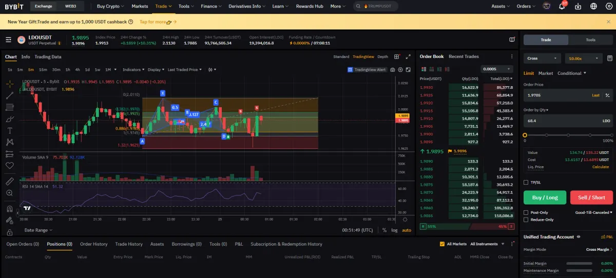 피보나치 0.885 구간에 매수 채결 성공