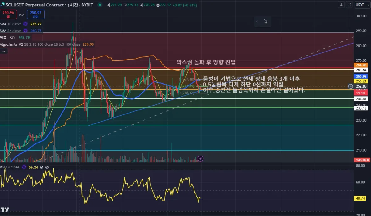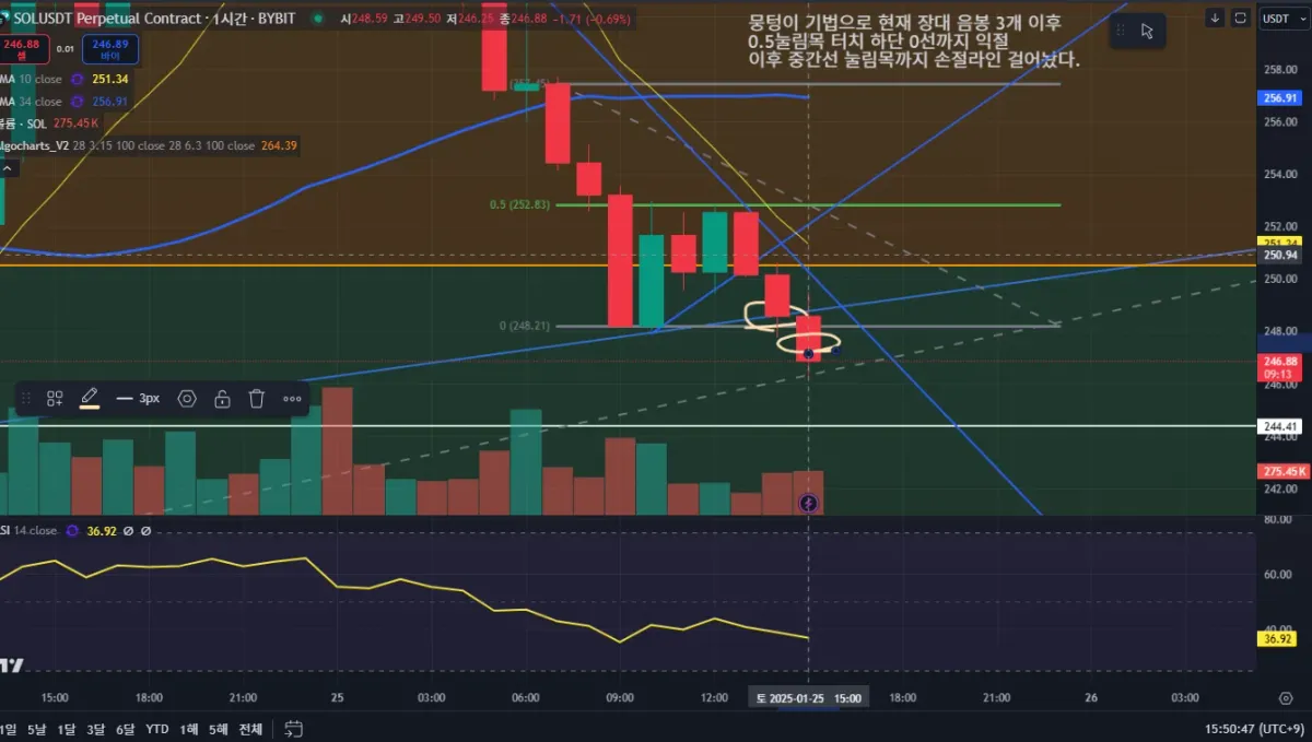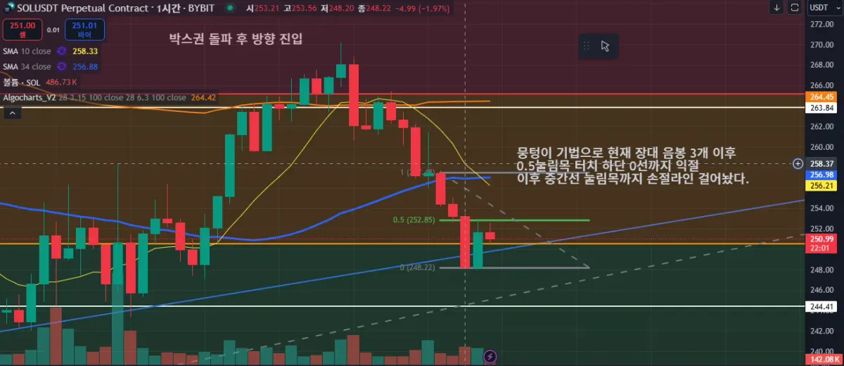 하단 248.41 까지 반절 익절 걸어 놓고 나머지는 추가 하락이 더 예상되는 구간이라서 홀딩하는 포지션으로 들어간다.