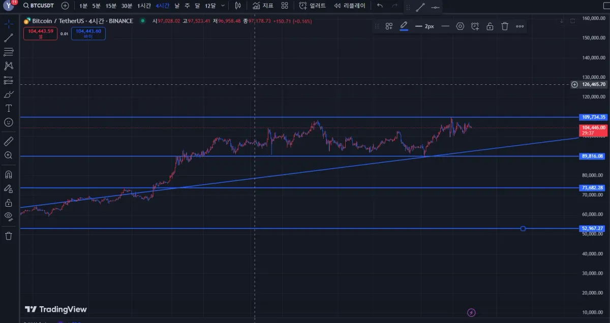 89k 와 109k 를 박스권 횡보?로 보이고 있습니다.