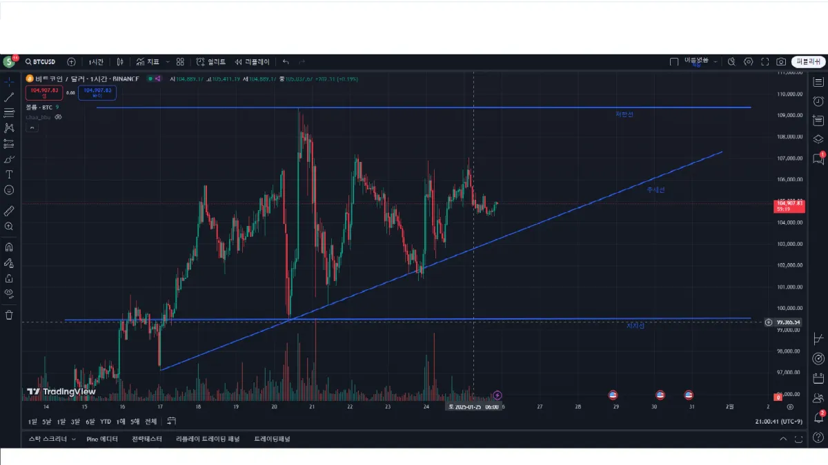 아직 잘모르지만 1시간봉으로 봤을때 삼각수렴??형태가 나올거같습니다