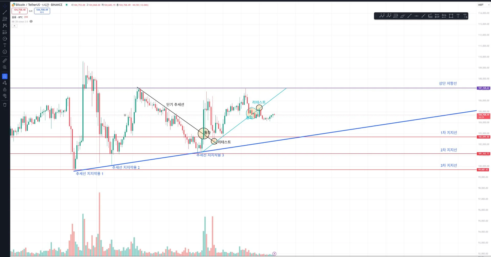 비트코인(바이낸스) 1시간 차트를 기준으로 작도하였습니다.