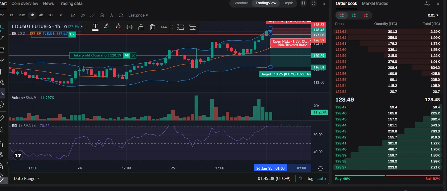 - 볼린저 밴드와 RSI 지표상으로는 가격이 내려올 것으로 예상됩니다.