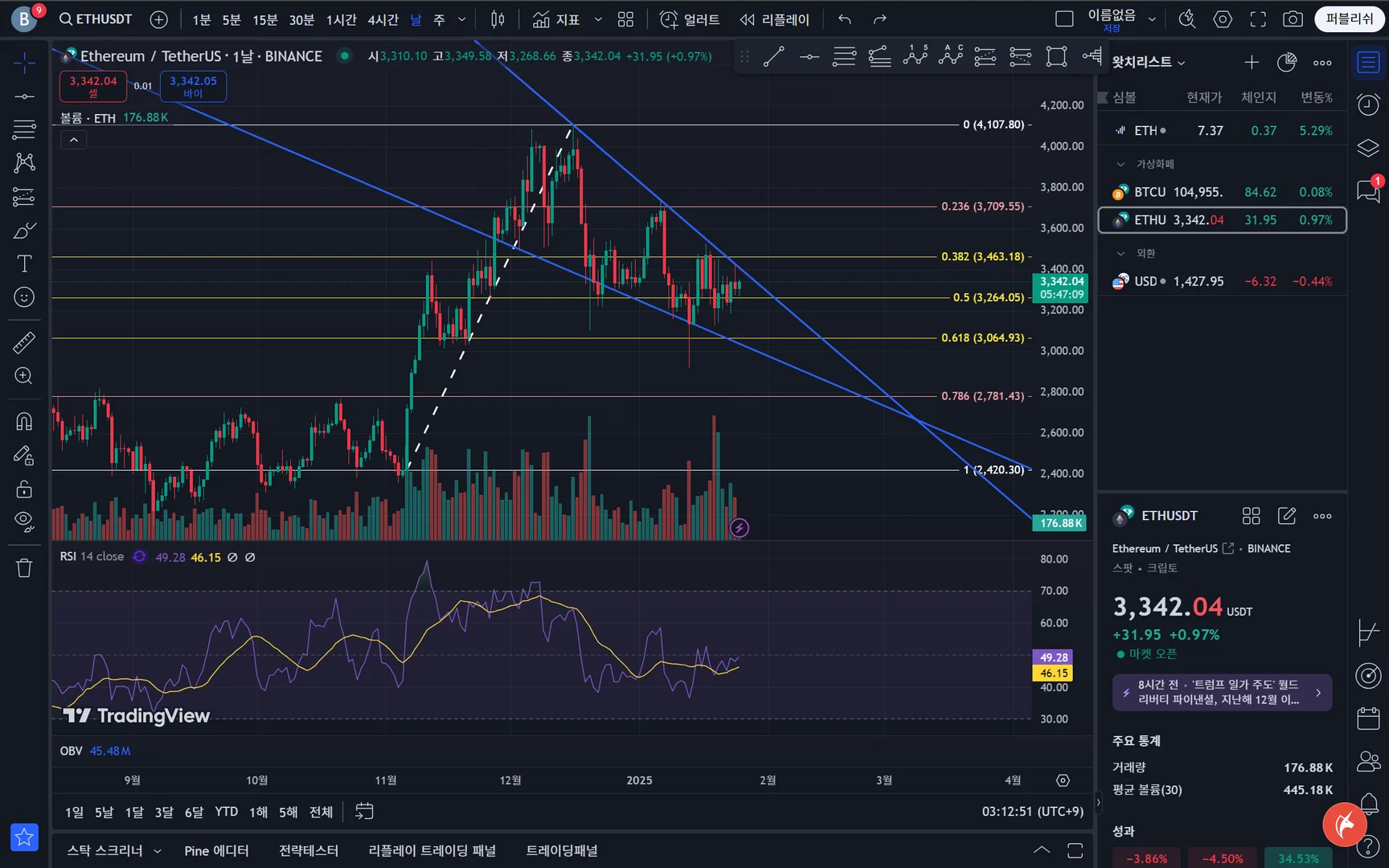 아직 많이 미숙하지만 강의에 나왔던 개념들을 이더리움 차트에 적용해보았습니다.