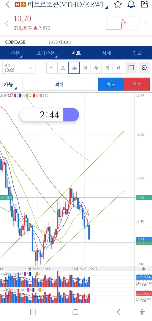 휴대폰으로의 트레이딩뷰가 익숙하지 않아 업비트로 했습니다