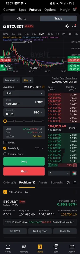 거래량이 줄고 있고 매수력이 rsi상으로는 하락 다이버전스로 보여서 1시간봉으로 삼각수렴으로 지지 받는 라인까지 내려올 것 같아 숏 진입하였습니다. 삼각수렴 저항선인 전고점을 손절라인으로 잡고 지지받는 부분을 수익라인으로 정했는데, 현재는 40이평선 지지받는 모습이라 곧 손절할 거 같습니당....