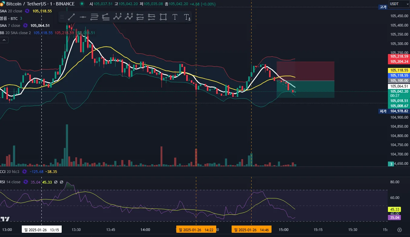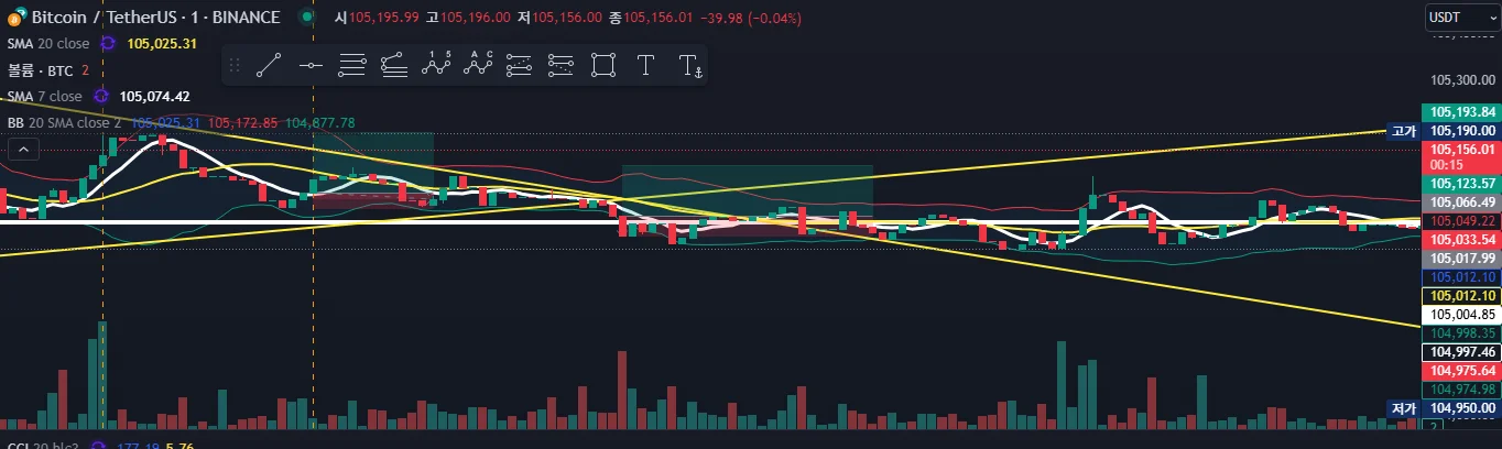 일봉을 보았을 때에 109k와 92k 사이에서 횡보하고 있고, 4시간, 1시간 봉에서도 횡보로 보여 어느 지점에서 들어가야할까 고민이 되었습니다.
