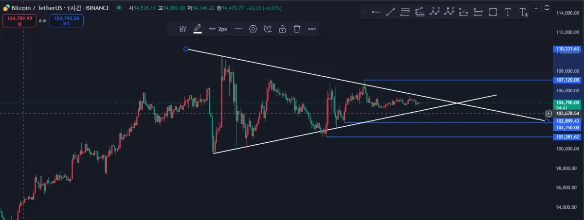 횡보하며 수렴하고 있는 것 같은데 위로든 아래로든 한번 크게 변동이 생기지 않을까 싶습니다.