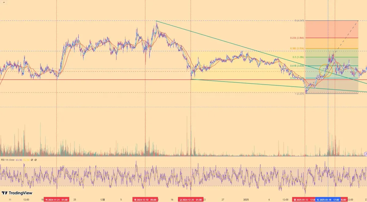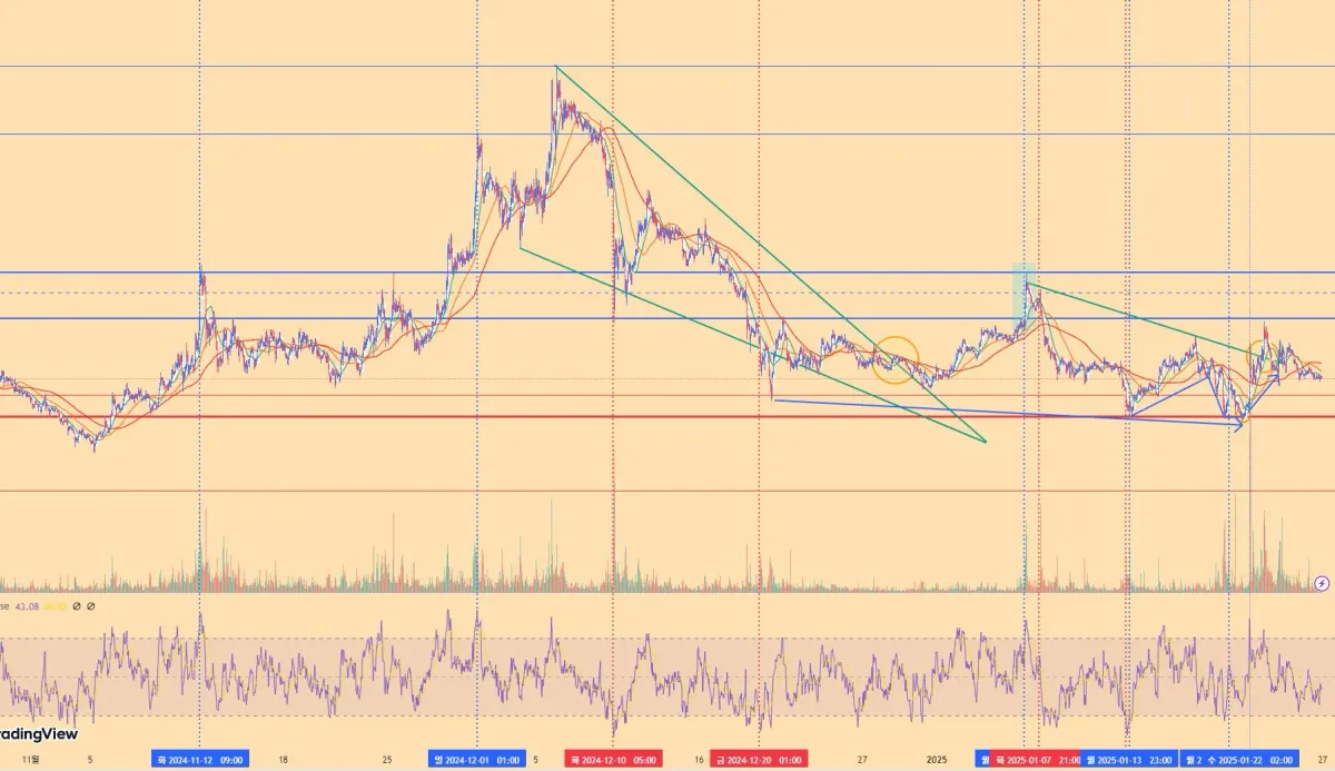 지지선에서 리테스트가 나오는 저점에서 조금씩 분할매수하여 수익을 올려가고 있습니다 :)