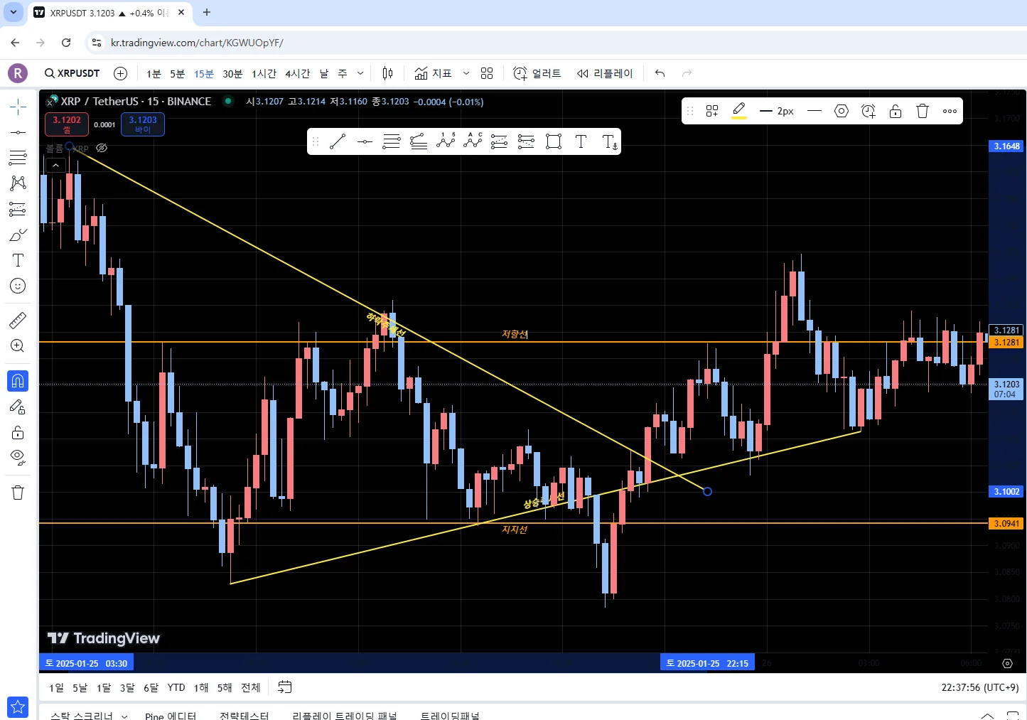 그리고 1시간봉으로 보면서 작도하다가 15분 봉으로 작도하면 작도하던 선이 날아가버리고 없습니다..