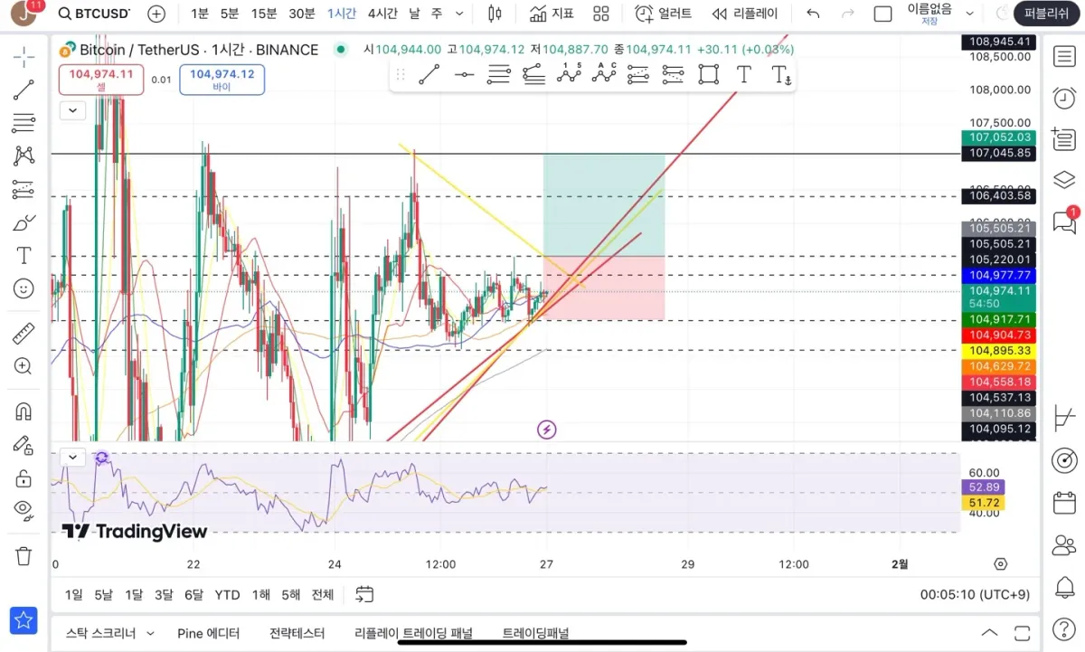 삼각수렴? 이라고 보고 전 고점을 뚫는 기준으로 매수수포지션을 잡았습니다!