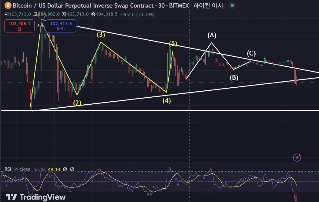 삼각수렴의 윗부분에서 계속 내려가는것을 확인 후 숏으로 진입하여 수익을 내봤습니다.