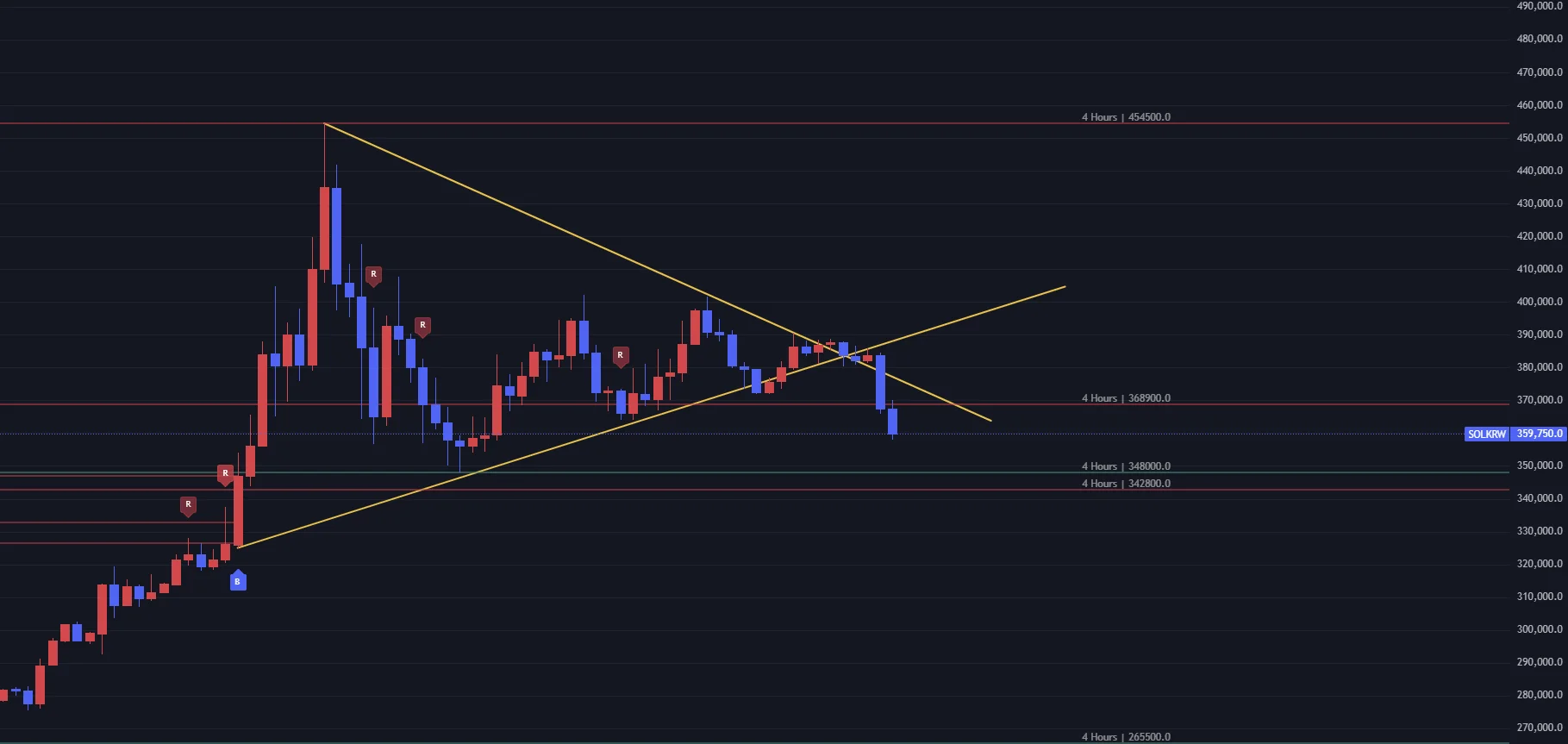 1시간 & 4시간봉 지지선인 34.8 터치 시 진입