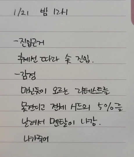 1/21 새벽 2시 (눈물 때문에 번져서 텍스트로 대체)