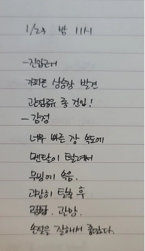 정말 진심이 많이 묻어나왔네요 실제로 적으면서 복기하시는건 멋있습니다. 그때 감정을 그때그떄 적는 습관을 가져야겠습니다 올려주셔서 진심으로 감사합니다.