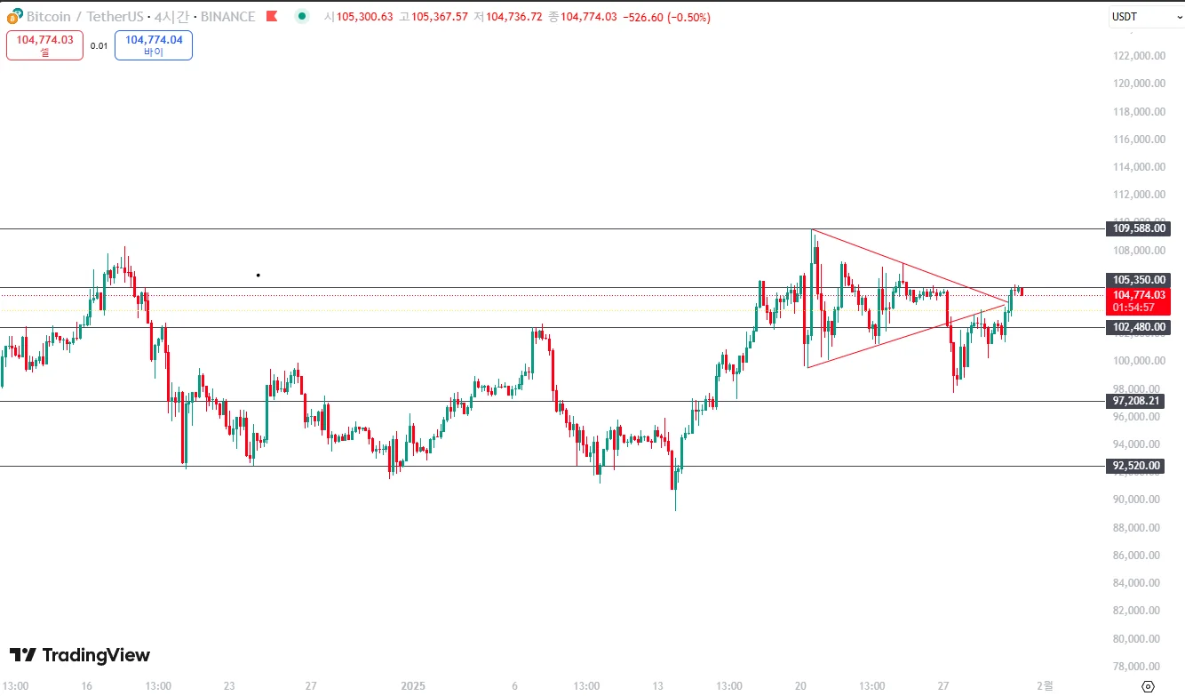 지지 /저항/추세선 4시간 기준 작도하였습니다.
