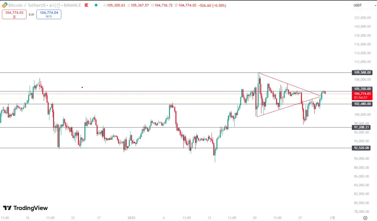 지지 /저항/추세선 4시간 기준 작도하였습니다.