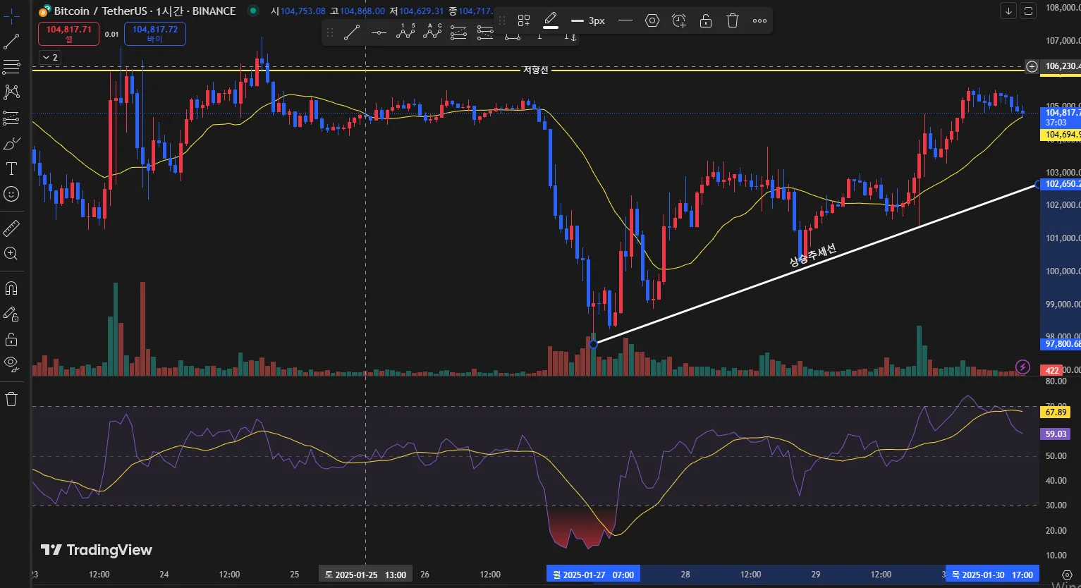 아람카님, 미션 잘 수행해주셨네요!! 처음 작도하려다보니 어려운 마음 이해합니다ㅜㅜ 반복해서 그리다 보면 익숙해지실 거예요ㅎㅎ 지지, 저항의 경우 1) 거래량이 많이 나온 캔들의 저점 혹은 고점에 표기해보거나 2) 가격의 저항혹은 지지를 여러번 받은 구역을 체크 해보시면 편하게 체크하실 수 있을 겁니다. 이 부분을 염두하여 작도해보시면 훨씬 더 명확한 차트 분석을 하실 수 있을겁니다. 그리고 가격이 움직이는 동안 형성했던 지지 → 저항이 변경 되었던 구간도 그려보시면 좋을 것 같습니다. 복수의 시간에서 가격의 흐름을 지지, 저항, 추세로 그려놓아야 나중에 가격 변동이 있을 때 판단할 수 있는 기준이 될 수 있기 때문입니다. 남은 미션과 챌린지도 응원하겠습니다!👍👍