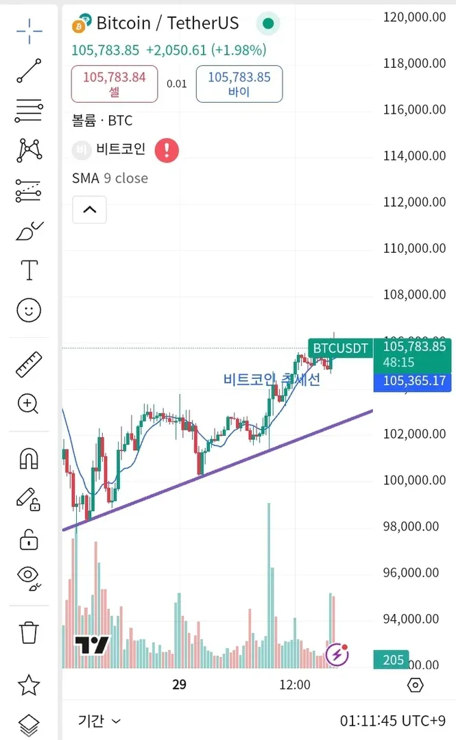 들기름막국수님 미션 수고하셨습니다! 상승 추세선을 그려주셨네요! 지지, 저항선도 추가로 그려보시면 좋을것 같습니다 :) 지지, 저항의 경우 1) 거래량이 많이 나온 캔들의 저점 혹은 고점에 표기해보거나 2) 가격의 저항혹은 지지를 여러번 받은 구역을 체크 해보시면 편하게 체크하실 수 있을 겁니다. 이 부분을 염두하여 작도해보시면 훨씬 더 명확한 차트 분석을 하실 수 있을겁니다. 남은 미션과 챌린지도 응원하겠습니다!🩵