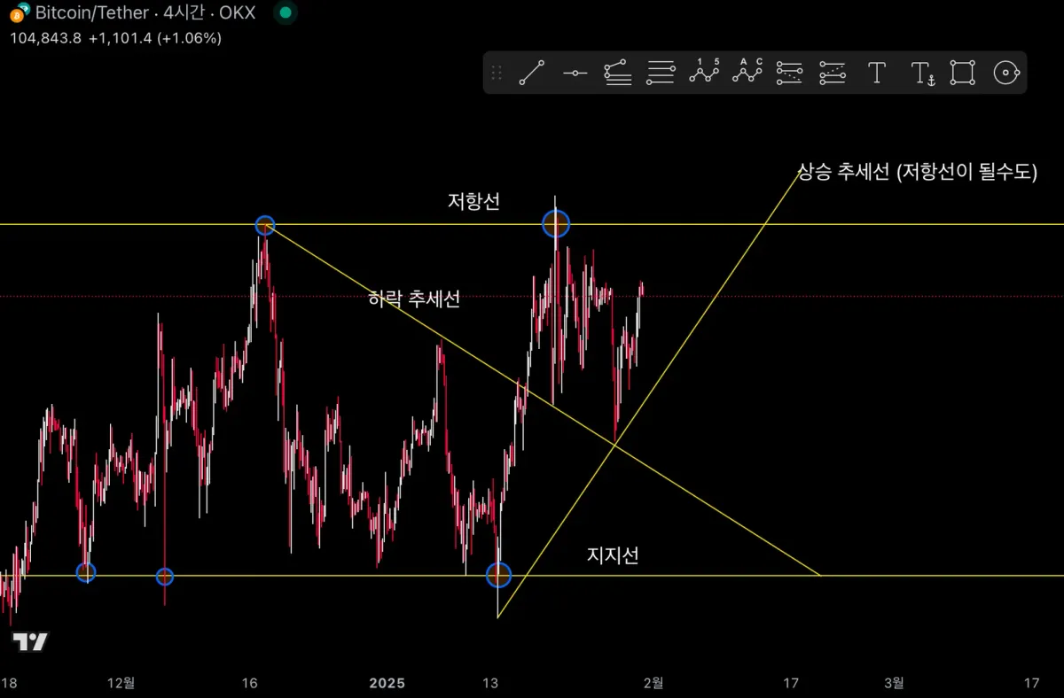 Paranai님 미션 수고하셨습니다!! 지지, 저항과 추세선 모두 잘 그어주셨네요👍👍 남은 미션과 챌린지도 응원하겠습니다!🩵