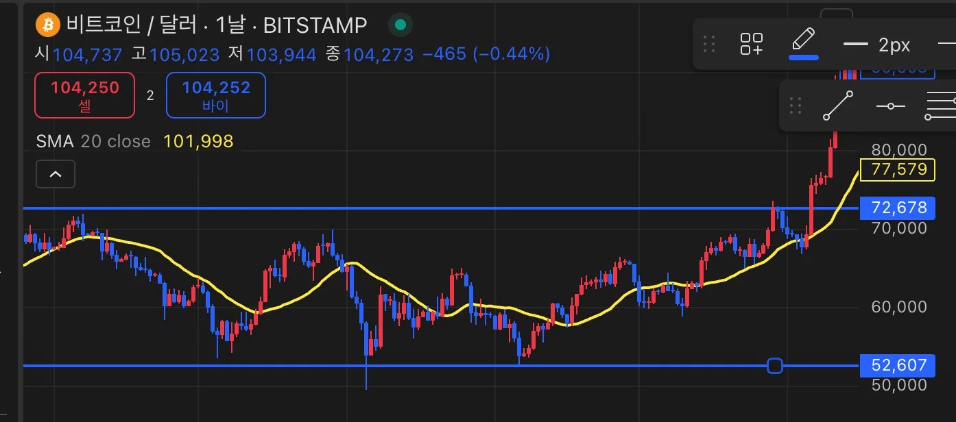 동화님 미션 수고하셨습니다! 다양한 날짜에서 분석을 해주셨네요!! 지지, 저항의 경우 수평으로 그려야하는데요, 1) 거래량이 많이 나온 캔들의 저점 혹은 고점에 표기해보거나 2) 가격의 저항혹은 지지를 여러번 받은 구역을 체크 해보시면 편하게 체크하실 수 있을 겁니다. 추세선의 경우 1) 하락추세선은 고점과 고점을 연결하여 그리고 2) 상승추세선은 저점과 저점을 연결하여 그리면 쉽게 그릴 수 있습니다. 이 부분을 염두하여 작도해보시면 훨씬 더 명확한 차트 분석을 하실 수 있을겁니다. 남은 미션과 챌린지도 응원하겠습니다!🩵