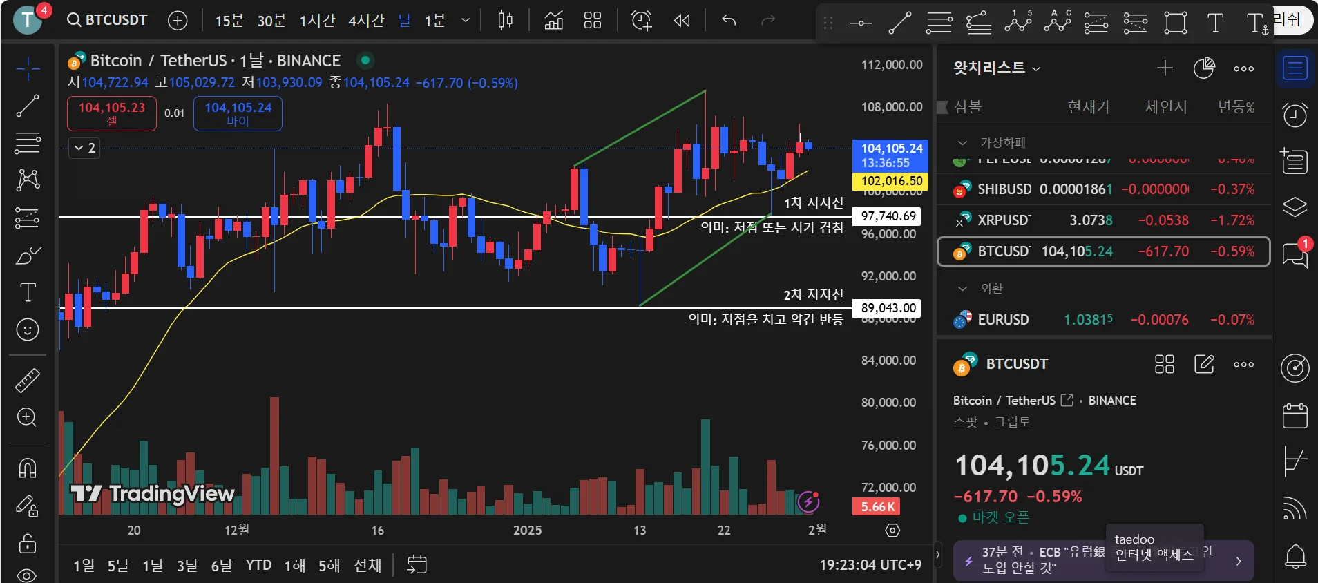 아 그리고 보통 일봉 기준으로 잡고 해야하는건지 따로 기준이 있는건지도 궁금합니다.