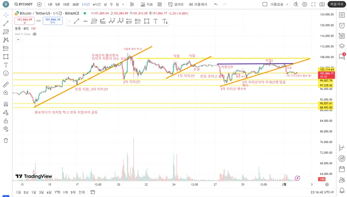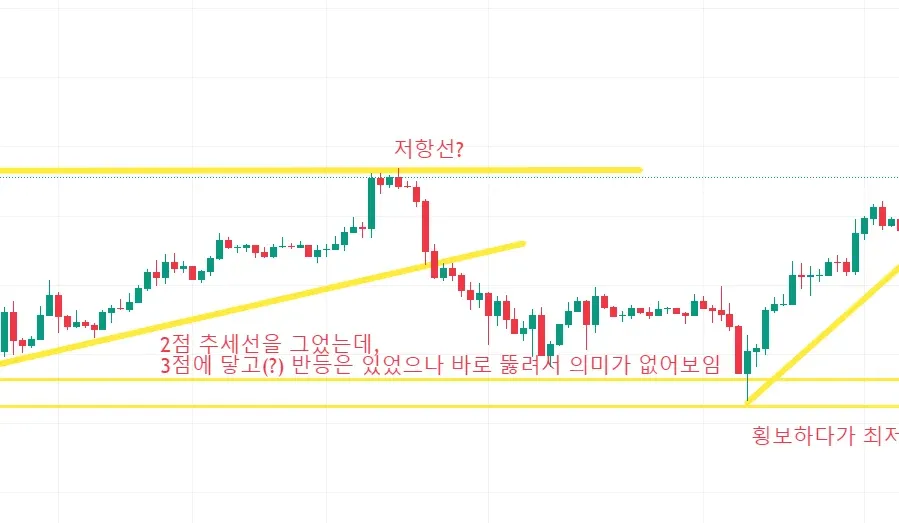 아니면 마지막 캡처에서 한 것처럼 오래 끌고 간 지지선도 의미가 있는 걸까요?