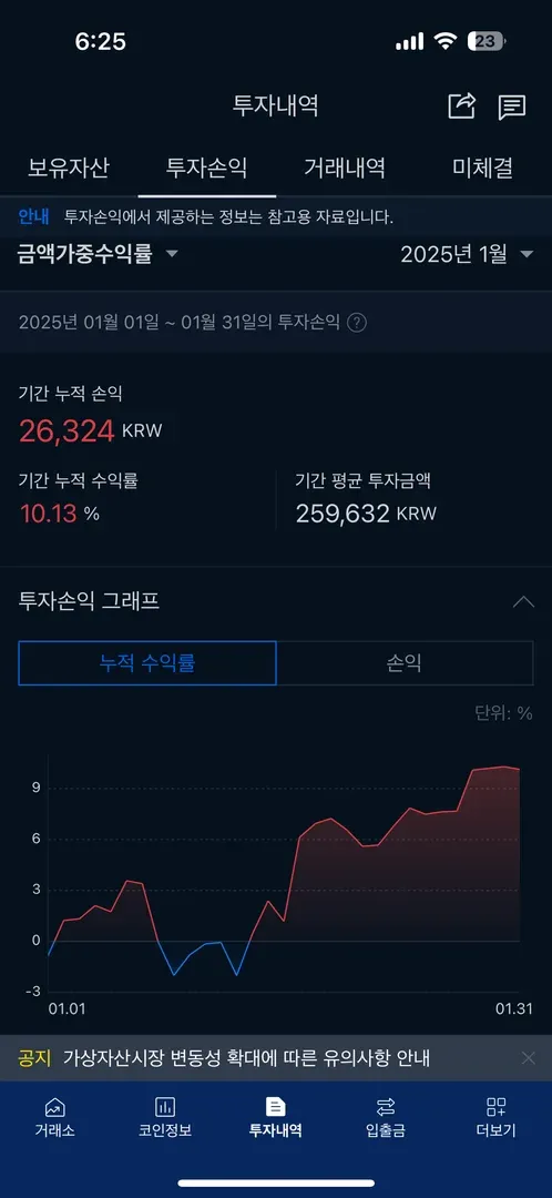 교육시작하고 실제로 해보면서 우상향한 제 수익입니다.