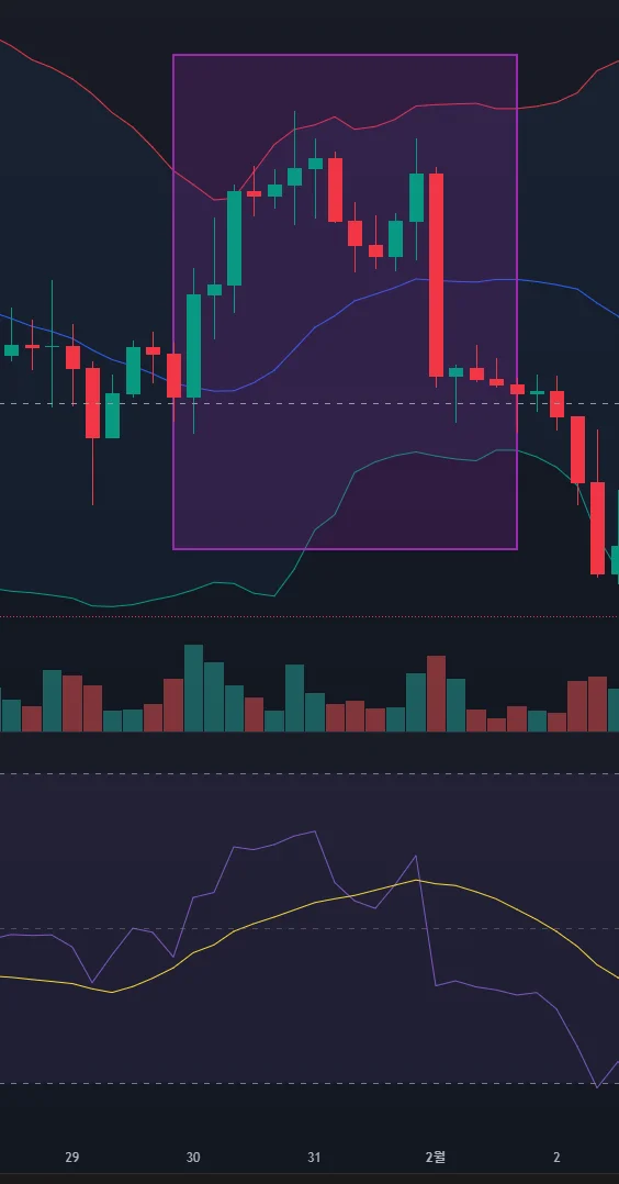 제가 가장 많이 사용하기도 하고 손에 익는 방법이라 날이 시간이 지나면 사소한 변수도 놓지게 되네요, 볼린저 밴드 안으로 다시 들어올거라는 확신만 가지고 안일하게 매매를 진행했던 것 같습니다. 추가로 다른 배율을 사용할땐 분할익절을 잘 활용해야겠다는 생각도 드네요! 더 정진하겠습니다 :D