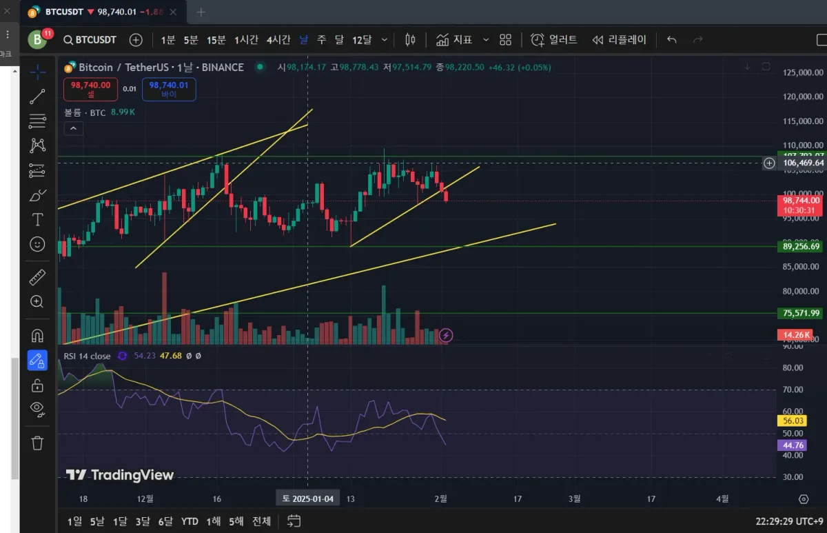 지지선인 89K 라인까지 손절라인을 잡고 관망할 예정이다.