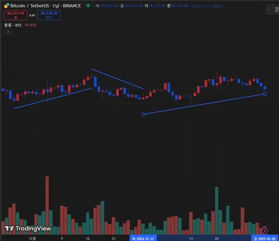 1일봉으로 25년 1월~2월 추세선을 그려보았습니다.