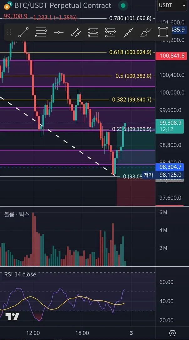 오더블록 하단에서 진입 수익률1.5프로 잡고 피보나치를 활용해서 수익구간을 잡았고 손절구간도 잡아뒀고 rsi 하단 뚤리는것을 보고 믿고 가져갔는데 수익으로 실현됐습니다