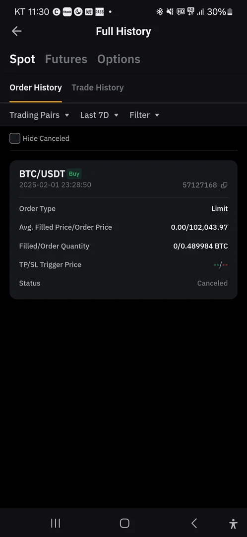 어제 bybit에서 데모버전으로 102.043.97에 약 5000만원 가량 체결주문을 했습니다.