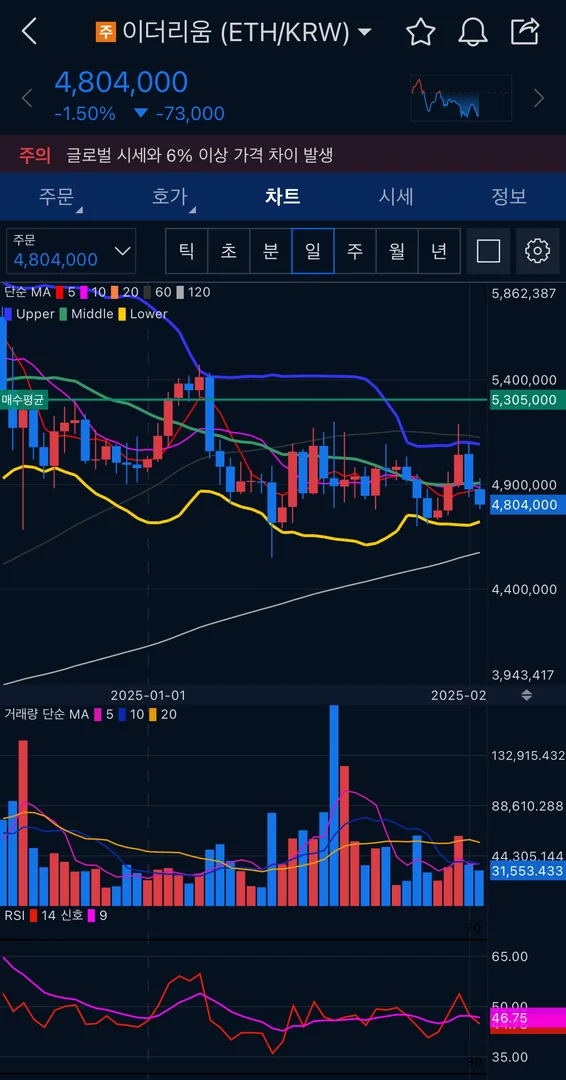 특강에서 들었던 rsi보조지표를 활용하여 30밑으로 내려가고 볼린저밴드의 하단부분에 있을때 추가매수로 물을 타고 70이상으로 올라가고 볼린저밴드의 상단을 터치할때 익절 혹은 손절하려했는데 아직 그런 모양이 나오지암ㅎ아 뮬려있는 상태입니다. 하지만 현재는 한달째 횡보하는 그림이라서 상승추세 혹은 하락추세가 나오지않아 추세가 시작되면 매수매도를 재판단해보려 합니다