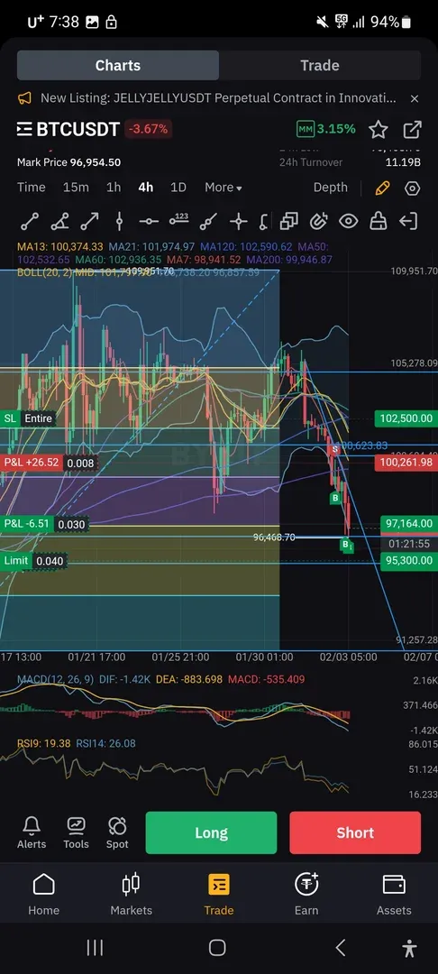 96500지지 깨짐, 단기매수세 거래량 부족
