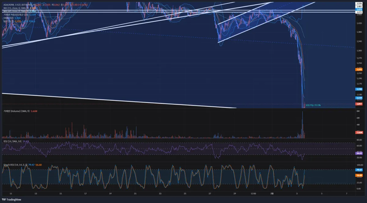 패러렐 채널로 이어봤을 때 장기적으로는 하락 추세였지만 단기적으로는 상승 추세여서 불탔다.