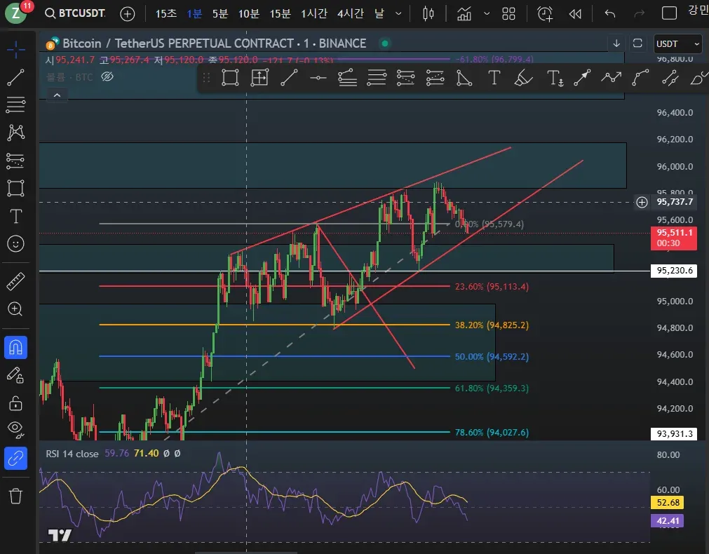 매물대 상방 돌파를 하며 피보나치 236구간 지지하는 것을 확인하고 RSI 매수세가 높아지는것을 확인해 진입하여 수익을 창출해 내었습니다.