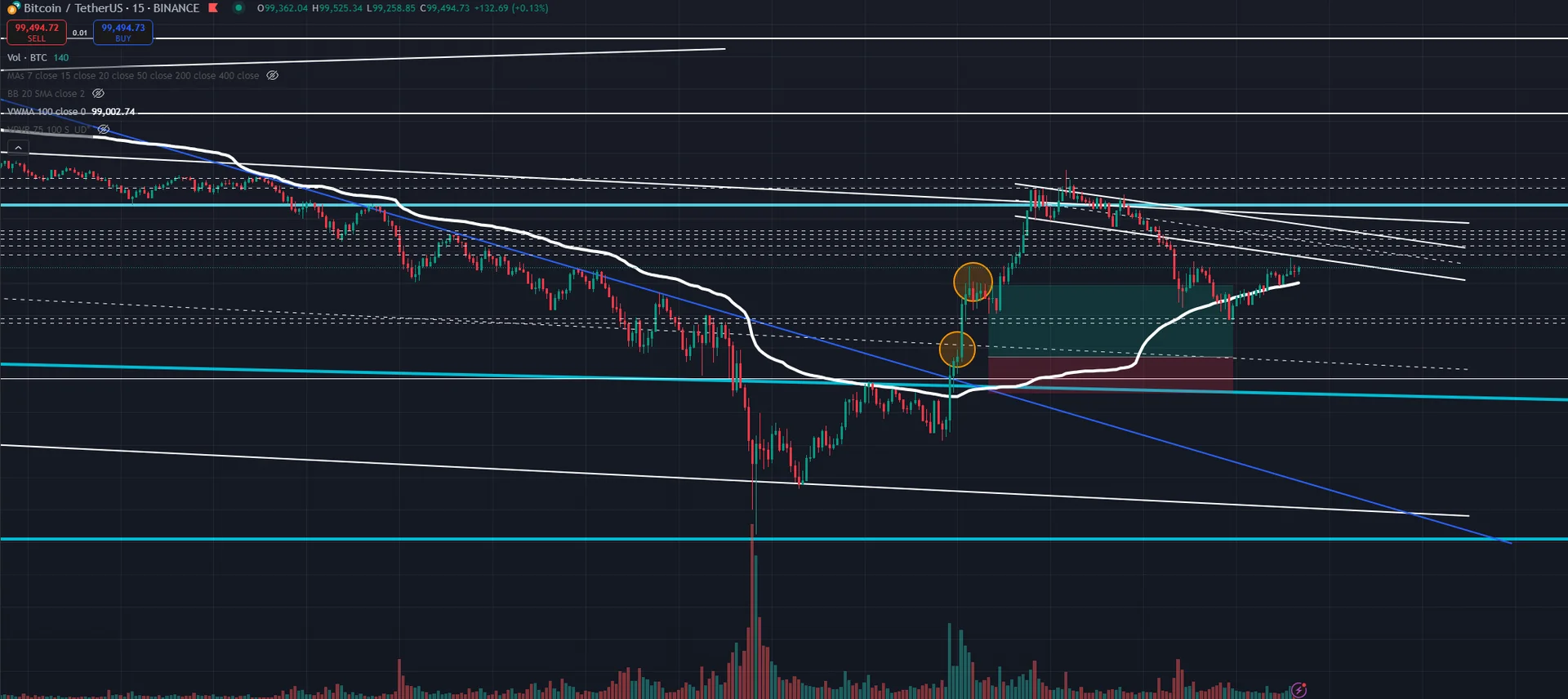 2. 15분봉 기준 지속적으로 저항 역할을 수행한 하락추세선 돌파(파란색 선)