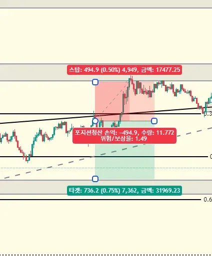 아직도 심법이 다듬어지지 않아 줄먹하고 포지션을 종료했지만, 이번에는 줄먹하지 않았다면 이득을 취하지 못했을 것. 즉 분할 익절을 생활화하자