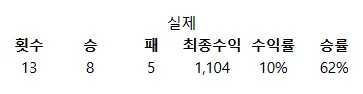 투입시드 1000 / 수익 13 / 최종시드 1082.5