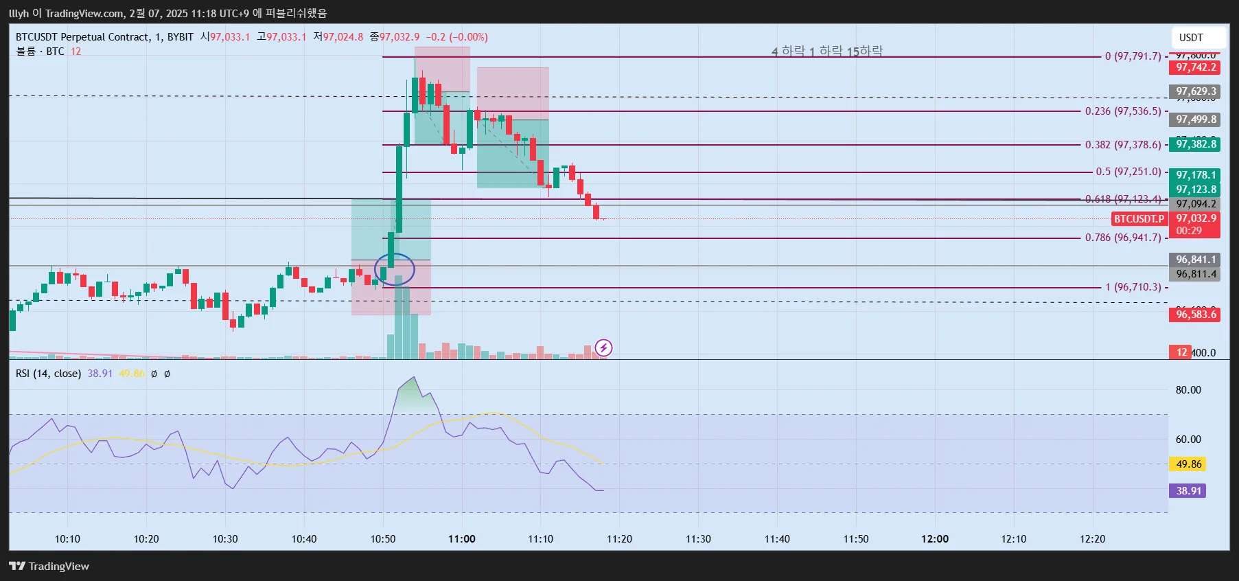 피보나치 되돌림 체크 후 각 구간 마다 익절 및 상승하면 재진입하여 수익을 얻었습니다.