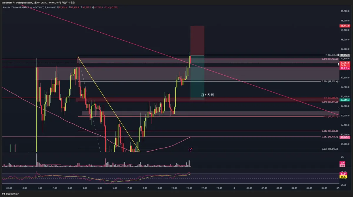 1)캡쳐본과 같이 하락추세선을 넘게되면 주 추세가 롱으로 전환되는 자리여서 매우 위험한 자리엿다