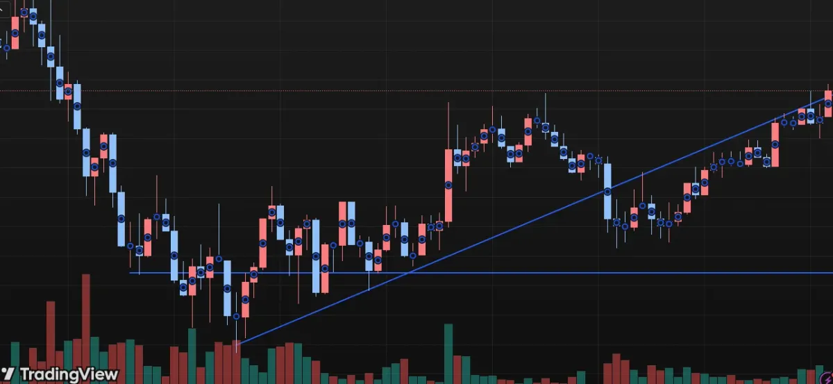 작성자사진 넣고 나니까 텍스트 입력이 안되네요 지지저항선은 크게 의미가 없었고 추세선에 딱맞게는 아니지만 추세선 아래에서 놀다가 종내에는 비슷해지니까 기분좋네요ㅎㅎㅎ