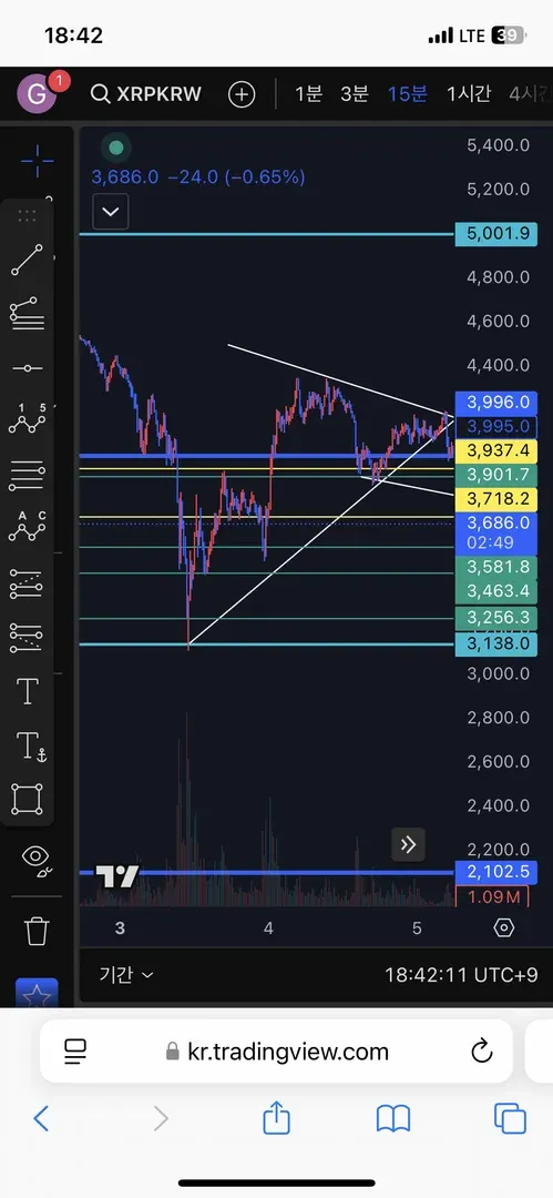 하락추세를 벗어났다고 생각해 구매를 하였고 다음 저항 라인에서 팔았습니다