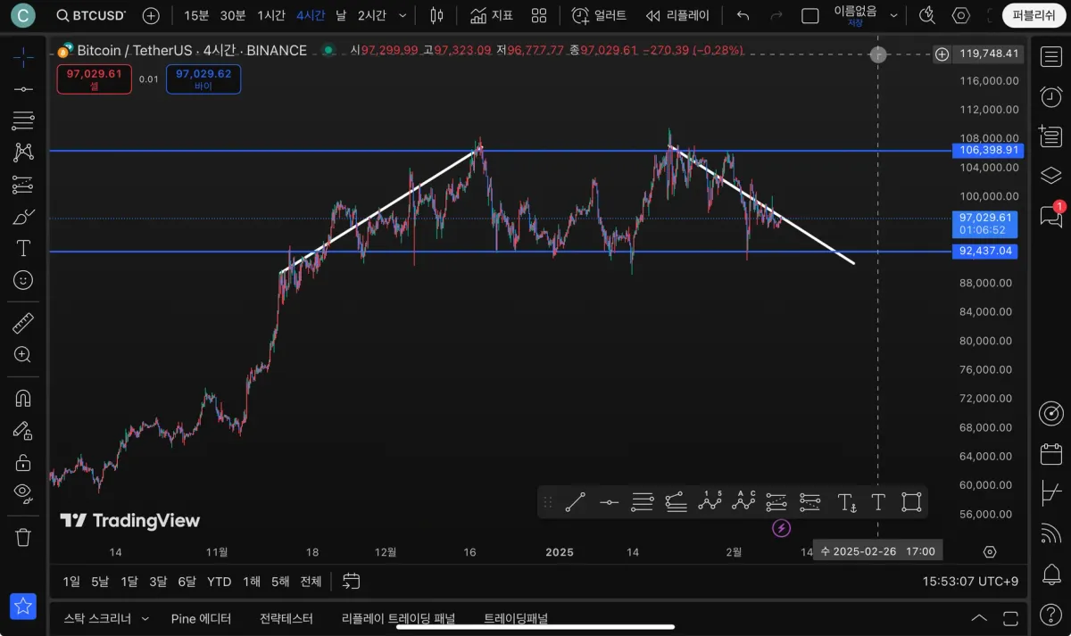 추세선 2개 - 현 횡보 혹은 하락이 이어질 거라 예상