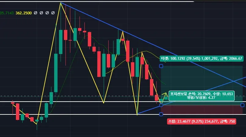 익절 포지션은 내려가는 추세선에 맞춰서 익절을 할 생각이고