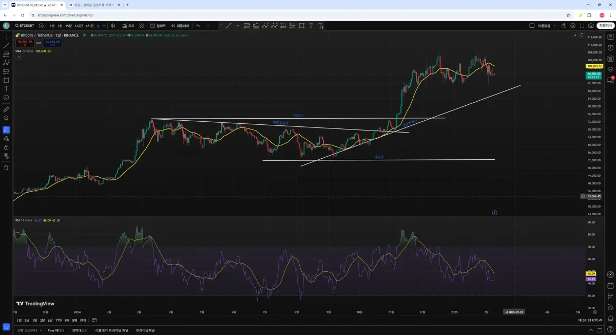 비트코인 일봉 차트로 작도해봤습니다.